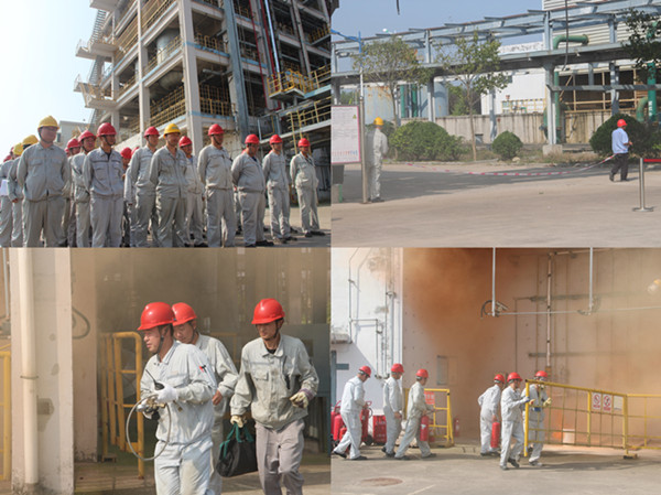 本次演練是模擬三異丁基鋁儲罐管線泄露起火,由于鋁劑儲罐靠近氫氣儲存區(qū),極易造成事故擴大,公司啟動現(xiàn)場應(yīng)急預(yù)案進行救援處置,各應(yīng)急救援小組立即趕赴現(xiàn)場,按職責(zé)對受傷人員進行救治,事故現(xiàn)場開展搶險救援,較好的完成了演練目標(biāo)。